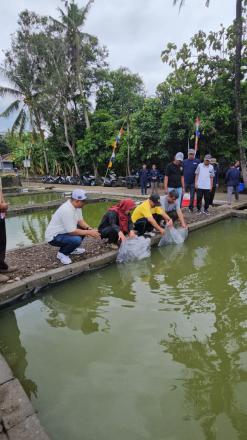 Dinas Kelautan dan Perikanan (DKP) Kabupaten Bantul lakukan tebar benih ikan Gurami sebagai upaya memperkuat sektor perikanan, dilaksanakan di Kelompok Budidaya Perikanan Mina Karya Tuwanggana, Padukuhan Punduhan , Tirtomulyo, Kretek, Bantul pada hari Minggu (09/11/2025).